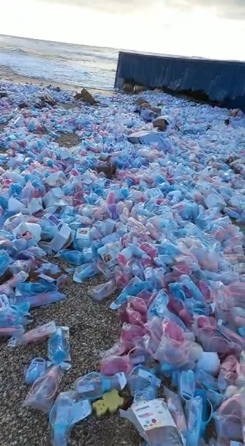 הציוד שבתוכו נשפך לים: ציוד לתינוקות, כלים חד פעמיים וצעצועים.