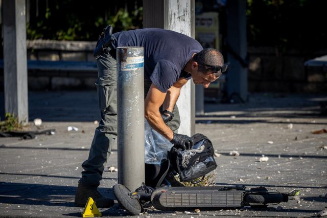 חבלן עם טלית ותפילין של אחד הנפגעים בפיגוע בירושלים. צילום: חיים גולדברג