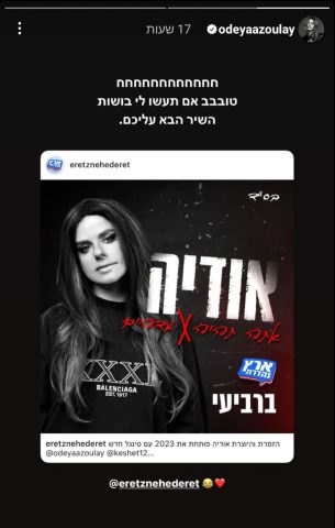 אודיה הגיבה לחיקוי וכתבה בחשבון האינסטגרם שלה: "אם תעשו לי בושות השיר הבא עליכם".