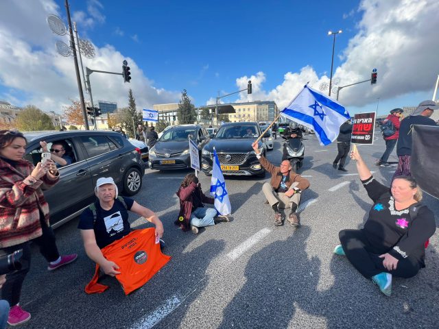 חוסמים את הכביש ליד בית המשפט העליון. צילום: חיים גולדברג