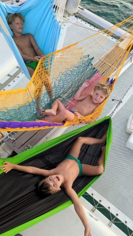 "יותר קל להגיד מה לקחנו". אז מה לוקחים לחיים ביאכטה עם שלושה ילדים? "9 ארגזים של כלי בית, משחקים (14 ק״ג לגו), וספרי לימוד, 7 מזוודות בגדלים שונים ו-2 גלשנים". את כל שאר החפצים שלהם הם מסרו, מכרו, והשאירו שלושה ארגזים אצל ההורים.