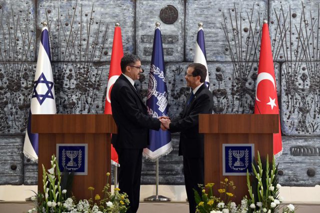 לראשונה מאז חידוש היחסים בין המדינות, נשיא המדינה יצחק הרצוג קיבל את כתב ההאמנה של שגריר טורקיה לישראל.