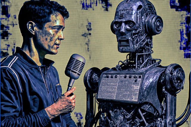 חלק מהתמונות בכתבה -מתוך מחולל התמונות מידג'רני, שם ביקשנו ליצור תמונה דיגיטלית של כתב שמראיין תוכנת למידה עמוקה
