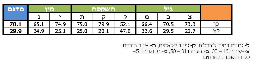 ואם כבר עושים פילוח על מצביעי הבית היהודי, על פי הסקר הציבור הליברלי-לייטי לא הצביע בכלל לבית היהודי אלא למפלגות אחרות. רק 52% הודה שהצביע לבית היהודי בהשוואה ל-75% אצל החרד"לים וכמעט 80% אצל הדתיים הקלאסיים. בחלוקה מגדרית, 75% מהגברים שמו טב בקלפי, בעוד רק כשני שליש מהנשים.