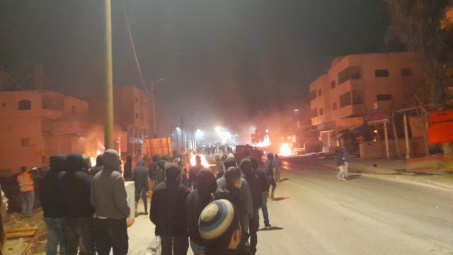לדברי המפגינים, כוחות יס"מ ומג"ב מנסים לפזר את ההפגנה ומבצעים ירי של רימוני הלם וגז בנסיון להניס את התושבים מהמקום.