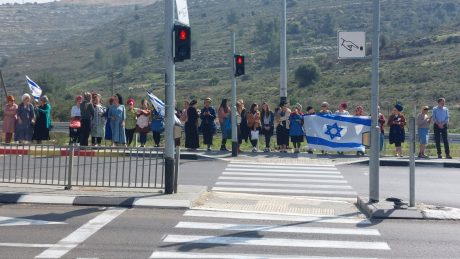 מתיישבים מחכים בצומת עלי (נ. אלישיב)