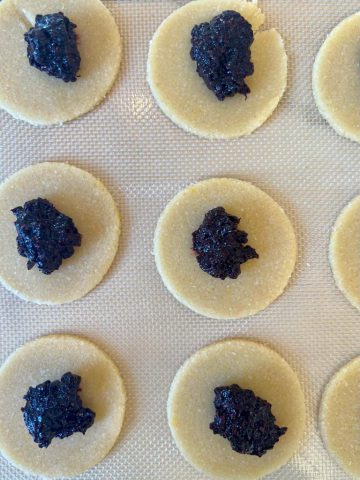 10. במרכז עיגולי הבצק להניח כפית של ריבת פירות יער.