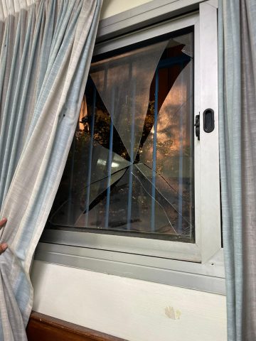 לא הושלך אבן. החלון נשבר ממקל של דגל, טוענים שלא בכוונה, אין לדעת. אבל לא הושלכה אבן