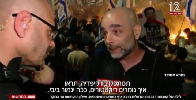 במהלך הראיון לאוהד חמו על רקע ההפגנה אמר היוצר והתסריטאי לכתב אוהד חמו: " ״הסוף שלו (ביבי) יהיה סוף כמו של כל דיקטטור בהיסטוריה שלנו. תסתכלו בוויקיפדיה תראו איך גומרים דיקטטורים, ככה יגמור ביבי.״
