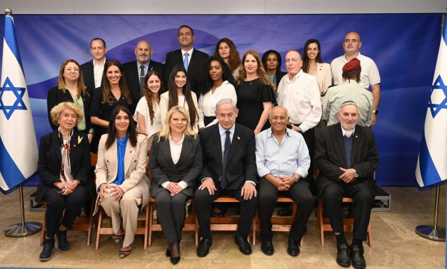 ראש הממשלה בנימין נתניהו ורעייתו שרה, יחד עם השרה מירי רגב, נפגשו היום (רביעי) עם מדליקי המשואות של יום העצמאות ה-75 של מדינת ישראל, בלשכת רה"מ בירושלים.