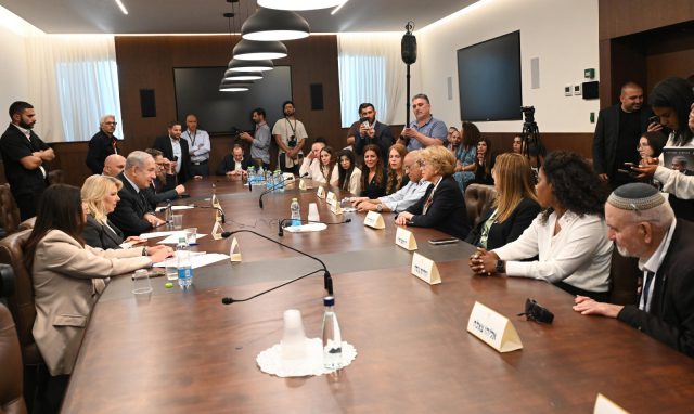 בפגישה השתתפו גם מנהל מרכז ההסברה מושיק אביב וחברי הוועדה לבחירת מדליקי המשואות.