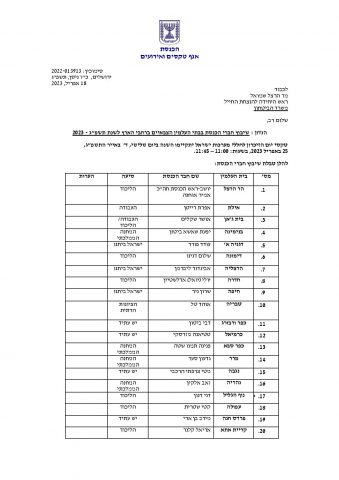 מהסיעות החרדיות, השר יצחק גולדקנופף ישתתף בטקס בקרית גת והשר מאיר פרוש בחורפיש.