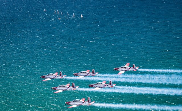 המטס יצא בהרכב של שישה מטוסים במבנה 'עפרוני' וביצע מופעים בבסיסים הפתוחים ובערים המרכזיות.