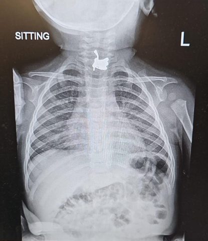 איילת שלז, סגנית מנהל המחלקה לרפואה דחופה ילדים במרכז רפואי מאיר מספרת: "מיד עם קבלתו במיון ילדים ולאחר תיאור המקרה של הורי התינוק החשד שלנו אכן היה שהוא בלע גוף זר ועל אף כי לא נצפה דבר בלוע, העברנו אותו לצילום שאישש כי ישנו גוף זר בחלק העליון של הוושט. יצרנו קשר עם מחלקת אף אוזן גרון והוא הועבר באופן מיידי לחדר הניתוח".