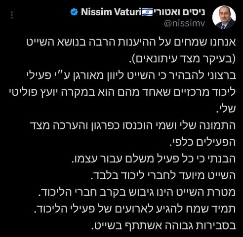 כעת מבהיר ואטורי בציוץ בטוויטר כי למרות שתמונתו הוספה למודעה ופורסמה ברשתות החברתיות שלו, היו אינו ממארגני השייט ושהיוזמה היא של חברי ליכוד, שאחד מהם הוא עוזרו. אך הבהיר כי איננו קשור לארגון השייט או קידומו, אך כי קיימת סבירות גבוהה כי ישתתף בעצמו בשייט.