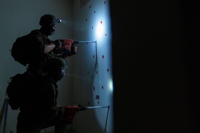 כוחות ההנדסה מכינים את המטענים להריסת בית המחבל (דובר צה"ל)