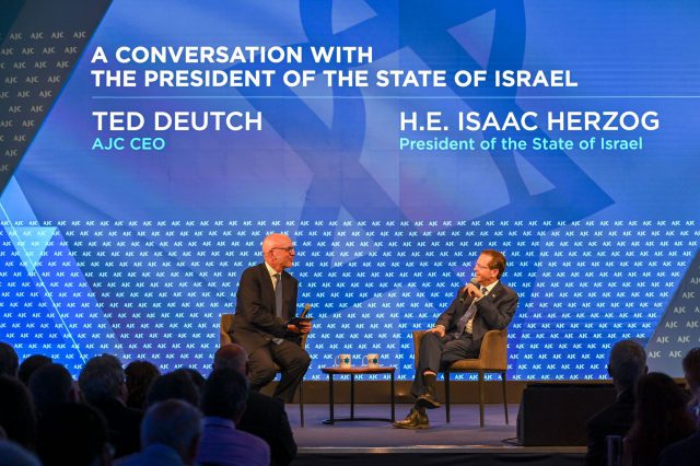 נשיא המדינה יצחק הרצוג נשא היום (ראשון) היום נאום בכינוס הפורום העולמי של הוועד היהודי-אמריקאי AJC, והתייחס לדיונים בנוגע לרפורמה המשפטית בבית הנשיא.