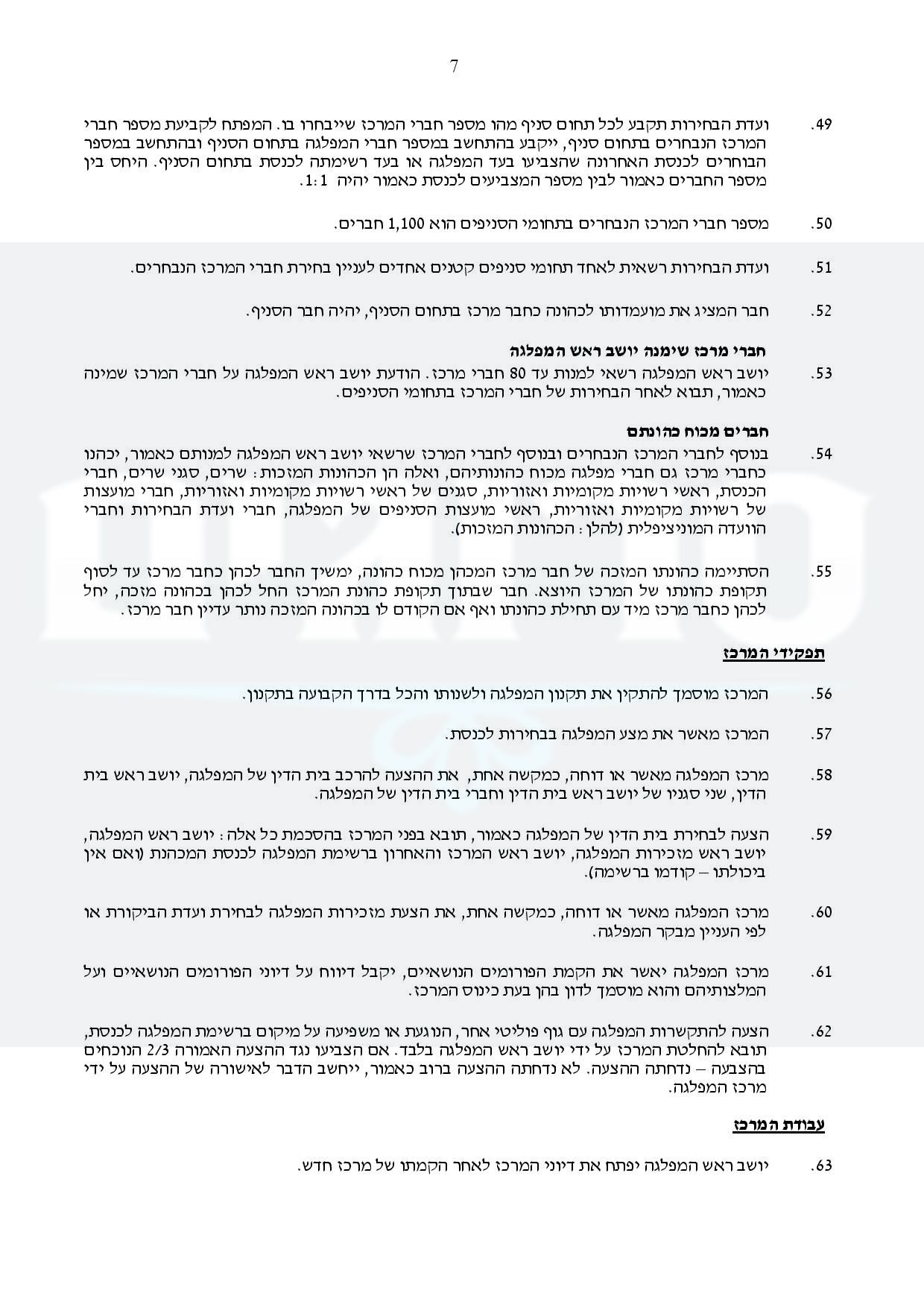 לפי סעיפים 34 ו-35 יו"ר המפלגה ימנה את מנכ"ל המפלגה וינחה אותו בביצוע תפקידו". "יו"ר המפלגה ימנה את גזבר המפלגה. מנכ"ל המפלגה ינחה את גזבר המפלגה במילוי תפקידו."