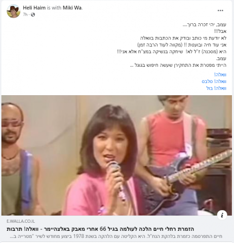 חלי חיים, שבימים אלו כבר לא נמצאת בעולם הבידור ומנהלת עסק עצמאי של קוסמטיקה, שיתפה את הכתבה של אתר וואלה בעמוד הפייסבוק שלה והתעצבנה על הבלבול "לא יודעת מי כותב ובודק את הכתבות בוואלה, אני עוד חיה ובועטת".