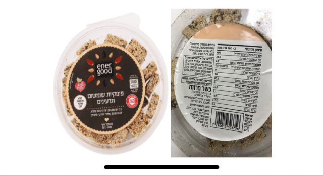 המוצר: "פינוקיות שומשום וגרעינים" המשווק ע"י חברת טבע ירוק בע"מ – רחוב האימבר 14 פתח תקווה.