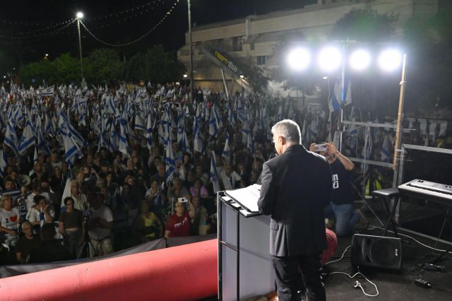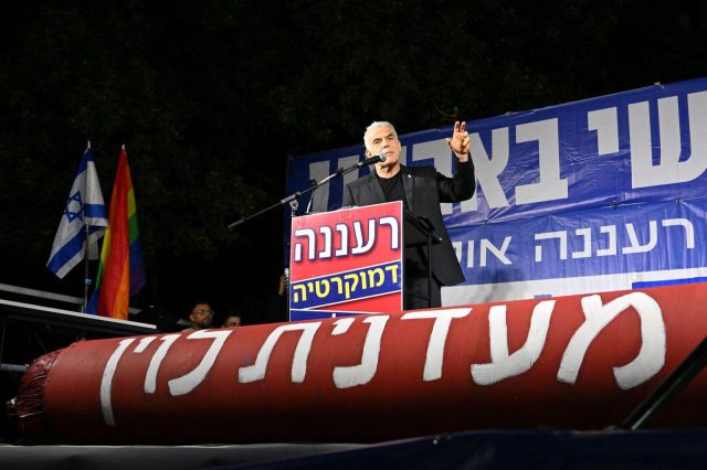 יאיר לפיד נאם בהפגנה ברעננה, ואמר: "רוצים לבלבל אותנו. הם אומרים לנו, 'אנחנו מעבירים רק את עילת הסבירות, זה קטן, זה טכני, האופוזיציה כבר הסכימה לזה בבית הנשיא".
