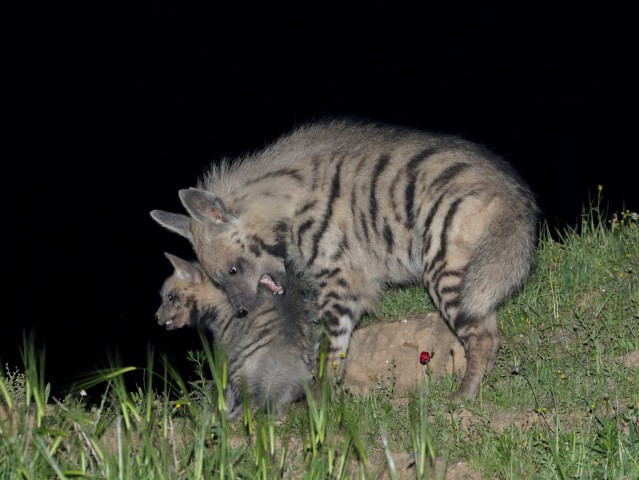 עזרא חדד פקח רשות הטבע והגנים שצילם את התופעה מספר: "מה שהדהים אותי זה ב-6 תצפיות שונות ראיתי ותיעדתי בשעות קבועות אחה"צ את הבייביסיטר הצעירה יוצאת מהמאורה בה שכנו הגורים, הייתה מביטה מסביב מבט קצר ומשם הולכת לוואדי הסמוך כ-400 מטרים מהמאורה, להביא את האם לגורים, כדי שהאם תניק אותם, בזמן שהאם הייתה מניקה את שלושת הגורים הבייביסיטר הייתה שוכבת ליד ולא מפריעה".