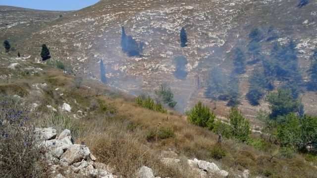 כוח שהורכב מכוחות ביטחון שהוצבו במקום ומספר מתיישבים יצאו אל הבערה על מנת להשתלט עליה ולכבותה, אך כאשר הגיעו למקום והחלו במאמצי הכיבוי הותקפו על ידי מחבלי בורקה, אשר תקפו אותם באבנים ואף פצעו את אחד המתיישבים פציעת ראש.