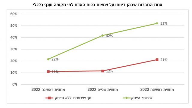 מספר חברות ההייטק שדיווחו על צמצום היקף התעסוקה שלהן חלה עלה בכ-30% מאז המחצית הראשונה של 2022. שינויים אלה נובעים מהעובדה כי ענף ההייטק מושפע יותר מגורמים כמו אירועים גלובליים, עליית הריבית ומחוסר הוודאות שיצר המשבר הפוליטי. בנוסף, עוד חברות דיווחו על צמצום בהיקף התעסוקה כאשר מאז שנה שעברה, דווח על עלייה מתונה של כ-10% בצמצום התעסוקה.