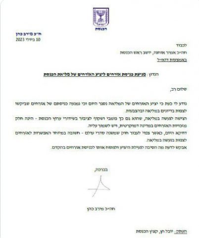 ח"כ מירב כהן הגישה שאילתא ליו"ר הכנסת, אמיר אוחנה, בעקבות סגירת יציע הציבור במליאת הכנסת.