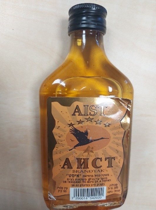 משקה כהיל ברודיאק "איסט" AIST: BRANDYAK מיוצר על ידי ברוקי משקאות בע"מ , האיזמל 4, נס ציונה, תכולה: 200 מ"ל, כוהל 40%, נושא בר קוד 7290014542020 . במוצר זה נמצאה רמת מתנול פי 174 מהמותר.