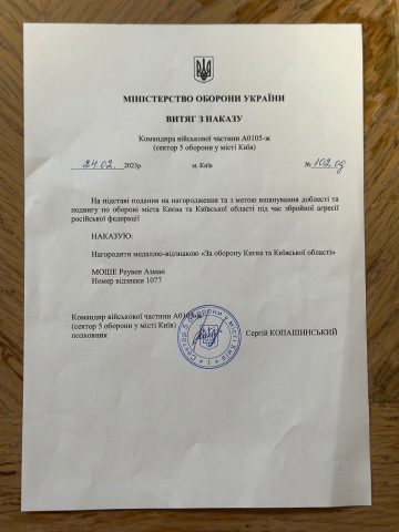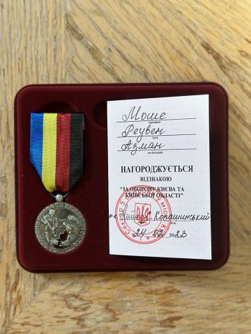 רבה של אוקראינה קיבל אות הוקרה על מעשי הגבורה בזמן ניסיון הכיבוש של קייב.