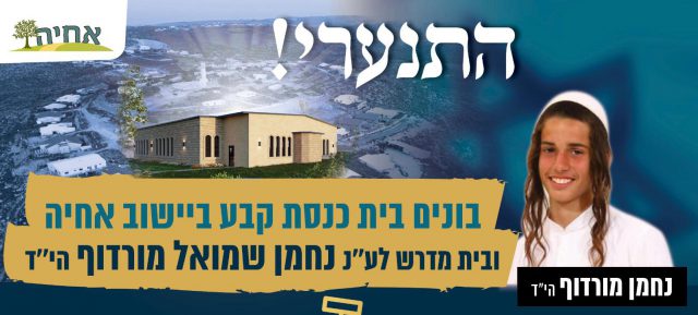 "נער עובד ה'" – בית כנסת קבע באחיה לעילוי נשמת נחמן מורדוף: