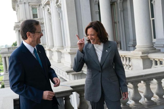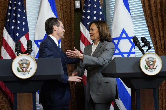 נשיא המדינה יצחק הרצוג, קיים אתמול (רביעי), לאחר נאומו בקונגרס,  פגישת עבודה מדינית עם סגנית נשיא ארצות הברית, קמלה האריס, בבית הלבן.