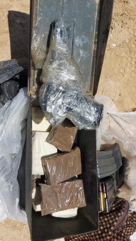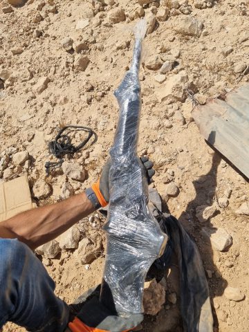 כחלק מפעולות החקירה, בוצע חיפוש על ידי שוטרים במתחם ביתו של החשוד במעשה, שם נמצא מאגר נשק ונתפסו רובה מסוג M16, אקדח, 9 רימונים מאולתרים, מחסניות ותחמושת.