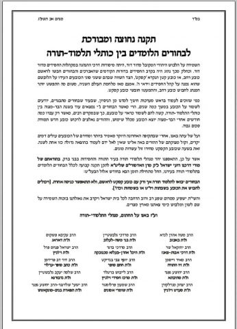 "אשר על כן" מכריזים המנהלים, "התאספנו יחד מנהלי תלמודי תורה בעיר התורה והחסידות בבני ברק, בהוראתם של מורי דרכנו רועי ישראל כ"ק מרן האדמורי"ם שליט"א לתקן תקנה קבועה לכלל הבחורים הלומדים בתלמודי תורה בעירנו, החל מתחילת הזמן הבא בחודש אלול הבעל"ט: הבחורים יבואו לתלמוד תורה אך ורק עם כובע קסקט לראשם, ולא תתאפשר כניסה אחרת".