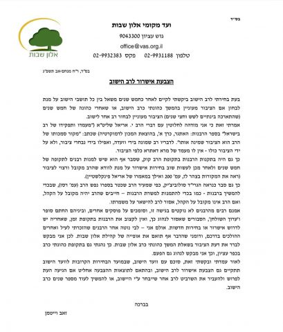 רב היישוב אלון שבות, הרב זאב וייטמן, שיגר בשבוע שעבר מכתב חריג לתושבי היישוב, בו הוא מבקש מהם להצביע האם הם בעד המשך כהונתו כרב היישוב, או שהם בעד שהוא יפרוש מהתפקיד, למרות שאין כך חובה או צורך בכך.