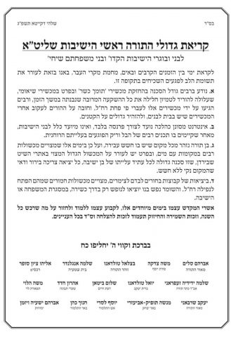 ט' באב עבר וחופשת 'בין הזמנים' החלה. לקראת ימי החופש פרסמו ראשי הישיבות החרדיות מכתב הקורא לבחורי הישיבות להישמר מפגעי הזמן והסכנות הרוחניות.