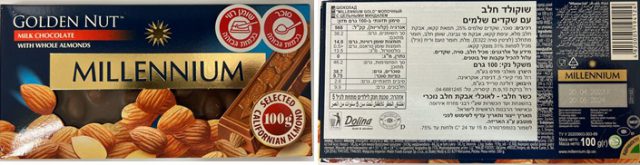 היבואן 'דולינה טרייד בע"מ' מודיע על איסוף מוצר "שוקולד חלב עם שקדים שלמים" המיוצר ע"י 'מאלבי פודס' בע"מ, אוקראינה.
