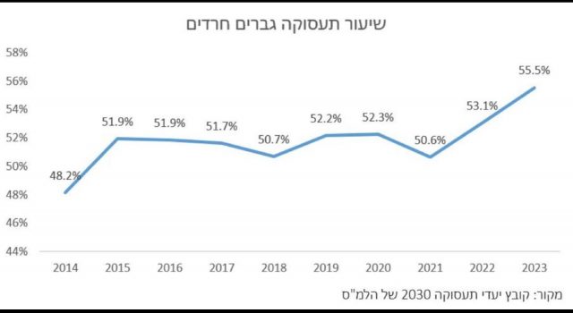 אחרי מספר שנים של עמידה במקום, נתוני התעסוקה של גברים בחברה החרדית עלו מתחילת השנה בכמעט שני אחוזים וחצי.
