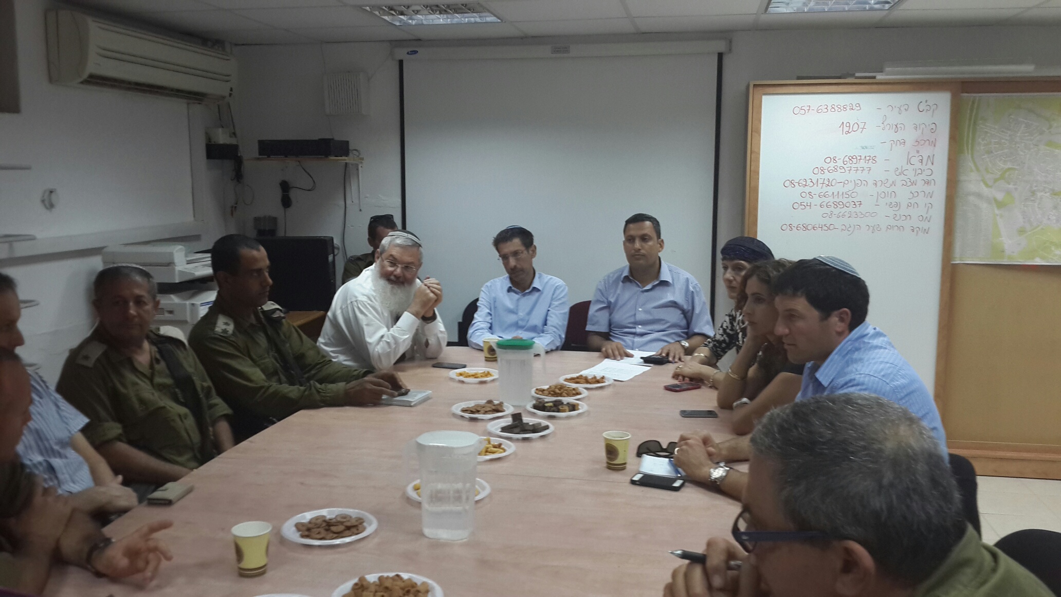 לפני מספר דקות מפקד האוגדה וראש עיריית שדרות מר אלון דוידי סקרו את המצב הביטחוני ושמעו על האיומים הנוכחים הניצבים בפנינו במערכה זו. בסקירה נכחו השר אורי אורבך, סגן השר בן דהן וח"כ שולי מועלם.