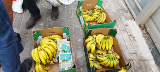 הבוקר הגיעו פעילי אם תרצו מחופשים בתור "משמר רפובליקת הבננות של בג"ץ" לביתה של נשיאת העליון אסתר חיות. הפעילים הביאו עמם ארגזים עם מאות בננות וביקשו להחליף את השומרים.