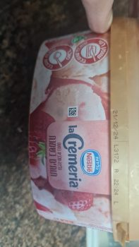 שם המוצר: לה קרמריה תותים בשמנת. תאריך תפוגה: 21.12.24. אצווה: L3172. שעות: 19:00-23:30.ברקוד: 7290106576858