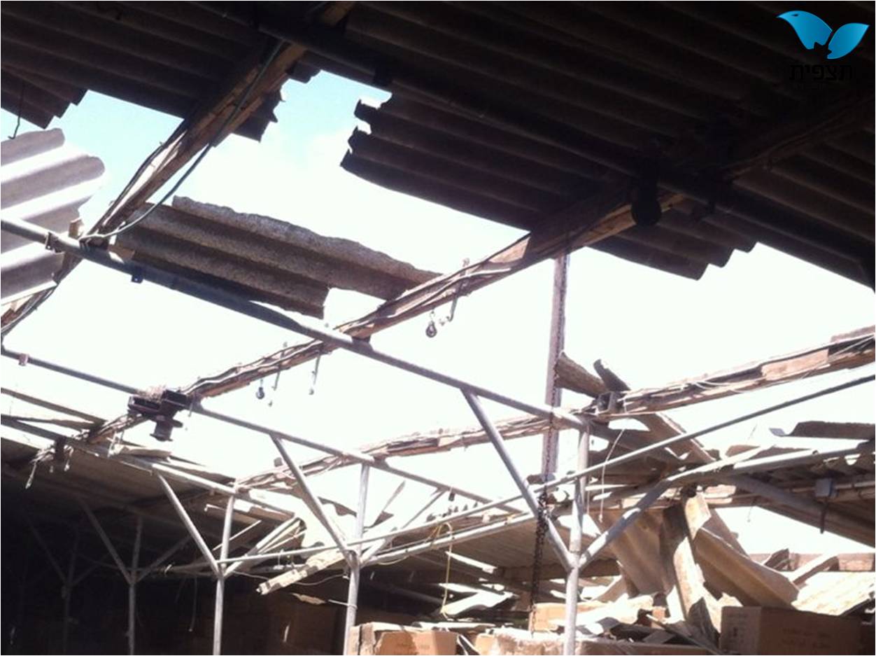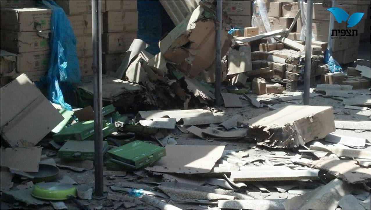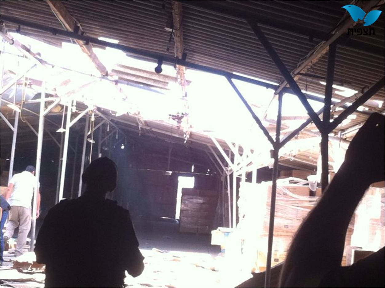 בשער הנגב, פגעה רקטה במחסן, וגרמה נזק לתכולתו.