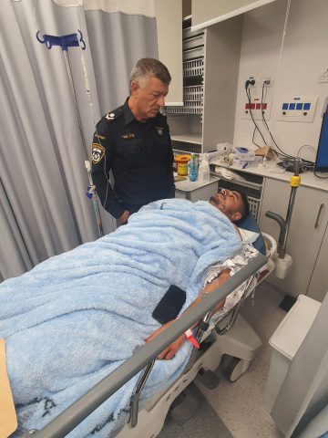 מפקד המחוז עם השוטר הפצוע (צילום: דוברות המשטרה)