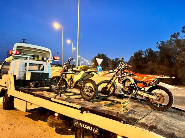 רוכב אופנוע נתפס נוהג בשטח כשהוא נוסע ללא קסדה ובהיותו בלתי מורשה לנהיגה בו וללא פוליסת ביטוח. הנהג קיבל הזמנה לדין והאופנוע הושבת למשך 30 ימים ונגרר למגרש אחסנה.