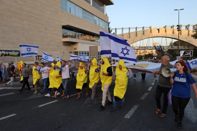 בזמן ההפגנה, אלפי מפגינים השתתפו במיצג "רפובליקת הבננות של בג"צ". את המיצג הוביל יו"ר תנועת אם תרצו מתן פלג ביחד עם פעילים מחופשים לבננות, עם שלט הנפה עליו כתוב "בג"ץ, אל תחריבו לנו את הדמוקרטיה".