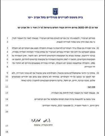 זה לא פגיעה בחרדים זה פגיעה בדואי דורות גם של אנשים מסורתיים שמתפתחים מידי שנה וימים ביום כיפור אבל בית המשפט זקוק בדחיפות לרפורמה רואים איך השופטים הורסים כל דבר טוב ובתל אביב לא צריך להשקיע שם שתקבע העיר כמו סדום עמוקה פשוט בושה