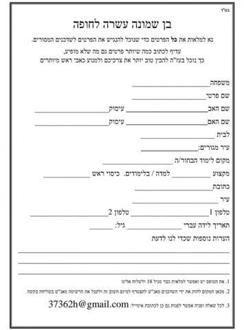 הטופס שחולק לאנשי החסידות
