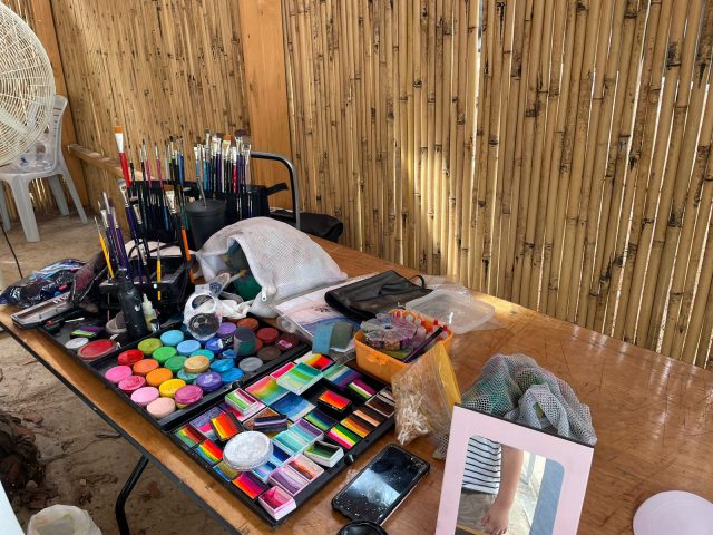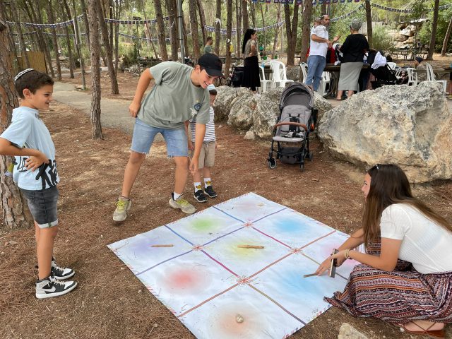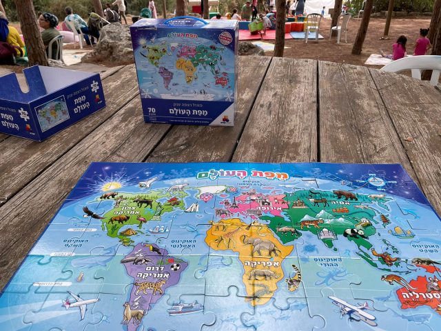 בתחילת המסלול ישנו מתחם של מחצלות, פופים צבעוניים ושולחנות עץ, עליהם מונחים משחקים שונים כמו פאזל של הגלובוס, רביעיות על דגלים בעולם ,משחקי רצפה גדולים, באולינג, מתחם ג'ימבורי לקטנטנים ועמדת איפור פנים עם מאפרת מקצועית שמוציאה תחת ידה יצירות אומנות. אנחנו ישבנו במתחם הזה כמעט שעה ועברנו משולחן לשולחן וממשחק למשחק ונהננו מאד.