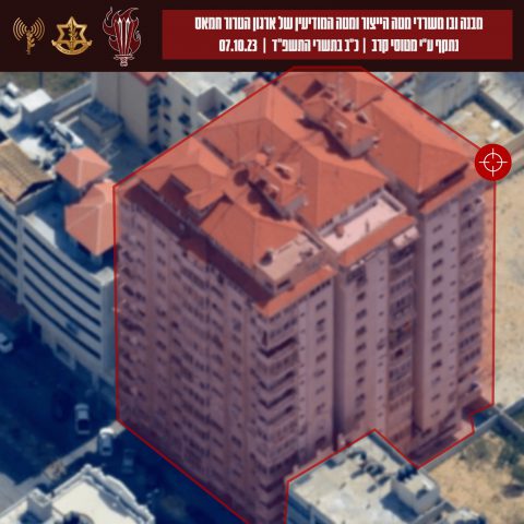 התשתיות הצבאיות ממוקמות בבניינים רבי קומות, דבר המוכיח פעם נוספת כיצד ארגון הטרור חמאס ממקם במכוון את נכסיו בלב האוכלוסייה האזרחית.